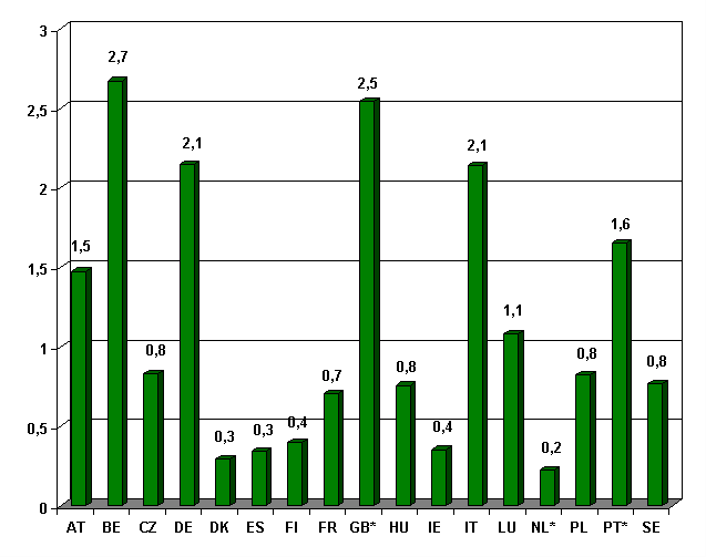 10.14. Průměrný počet silničních nehod s následky na zdraví na dálnicích na 1 kilometr v roce 1998