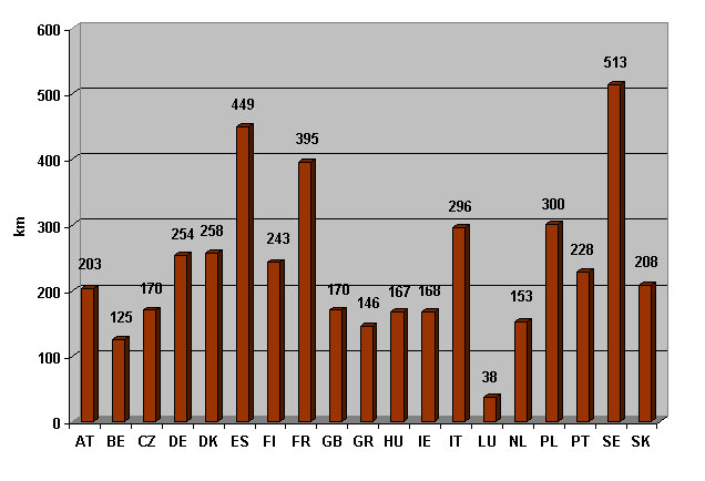 10.9. Průměrná přepravní vzdálenost zboží v železniční nákladní dopravě v roce 1998