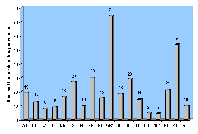 10.11. Average vehicle performance in the freight road transport in the year 1998